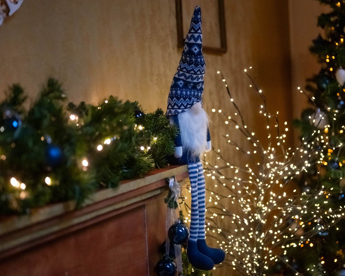 Klasszikus, meleg, gyerekbarát – fehér kandalló, csillogó fenyőfák, mézeskalács figurák és lágy pasztell színek.